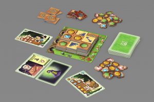 Nachdem Phil Walker-Harding bereits im letzten Jahr mit Bärenpark bei uns für ein schönes Puzzelspiel gesorgt hat, überzeugte er uns in diesem mit seinem neuen 3D-Puzzler. Zu Beginn erhalten dabei alle Spielerinnen und Spieler 15 dominoartige Doppelplättchen mit je zwei Pfefferkuchensymbolen, sowie einen Hausplan. Reihum verbauen sie dann jeweils eines der Doppelplättchen auf dem 3 x 3 Raster ihres Hauses und erhalten die überdeckten Pfefferkuchen. Dabei darf nicht nur nach oben, unten, links und rechts gepuzzelt werden, sondern im späteren Spielverlauf auch nach oben. Für die Mathematiker unter Euch: natürlich kann man kein 3 x 3 Raster vollständig mit Doppelplättchen füllen. Dafür gibt es allerdings die Joker und Treppen, die jeweils nur Einzelplättchen sind. Mit den erhaltenen Pfefferkuchen können im Anschluß Märchenwesen angelockt und gefangen werden, die in einem allgemeinen Vorrat ausliegen. Das Spiel endet sobald jede Hexe alle Ihre Doppelplättchen verbaut haben. Wer am erfolgreichsten Märchenwesen eingefangen und somit die meisten Punkte gesammelt hat gewinnt das Spiel.