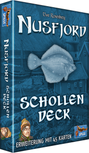 Mit dem Schollen Deck gibt es nun Nachschub für alle Fans von Nusfjord. Zum einen enthält die Verpackung das namensgebenden Schollen Deck, also das (neben den drei Decks aus dem Grundspiel) vierte Deck für Nusfjord, sowie zwei weitere Ergänzungen. Da wäre die Architektin, die erste Frau im Ältestenrat (und hoffentlich nicht die letzte), die zu Spielbeginn zufällig unter einen der Ältestenstapel gelegt wird. Könnt Ihr sie für Euer Unternehmen gewinnen, so bringt sie ein zufälliges "A"- oder "B"-Gebäude ins Spiel und ermöglicht Euch gleich im Anschluss eine Gebäudebau-Aktion. Außerdem, besonders interessant für Besitzerinnen und Besitzer der ersten Auflage, kommt die Erweiterung mit 25 Metallmünzen in Goldoptik und passender "Nusfjord-Prägung".